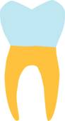 Chaque dent se compose extérieurement de deux parties: la couronne et la (ou les) racine(s). La couronne est la partie visible de la dent située au-dessus de la gencive. Elle est recouverte d'émail. La racine est la partie cachée de la dent située dans l'os. Elle est recouverte de cément. La couronne et la racine se rejoignent au collet. |