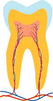 La pulpe dentaire se trouve au centre de la dent. Elle est constituée d'un tissu mou qui contient les nerfs, veinules et artérioles, lesquels assurent la vitalité et l'irrigation sanguine de la dent. C'est la pulpe qui rend la dent sensible et qui lui fournit des cellules nourricières ainsi que des agents de défense et de réparation. Elle est en relation avec l’ensemble des systèmes nerveux et vasculaires de l’organisme. Ce qui explique que certaines pathologies dentaires puissent affecter d’autres organes. |